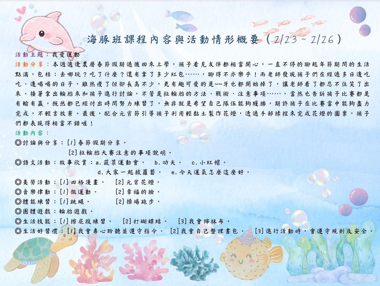 海豚班課程內容與活動情形概要