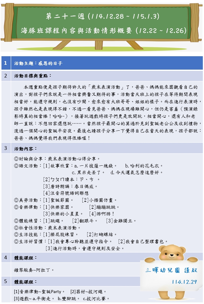 海豚班課程內容與活動情形概要